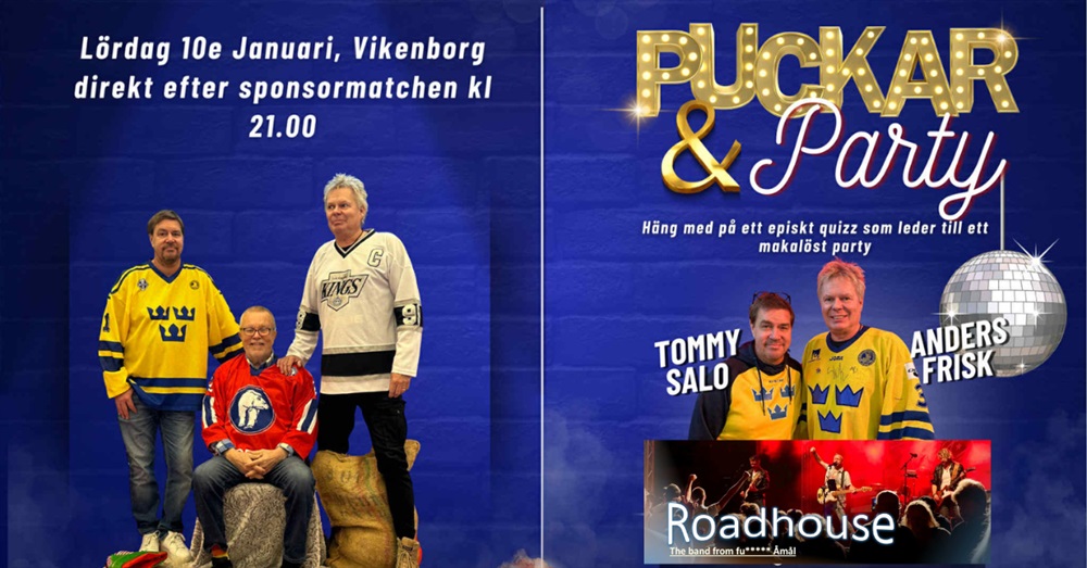 Mellan 21.00-01.00 blir det en helkväll med Puckar & Party. Häng med på ett episkt quiz under ledning av entertainer Anders Frisk, där Salo och Boork intar huvudrollerna. Detta leder oss till ett makalöst party där vi senare på kvällen välkomnar Åmålsbandet Roadhouse på scenen!